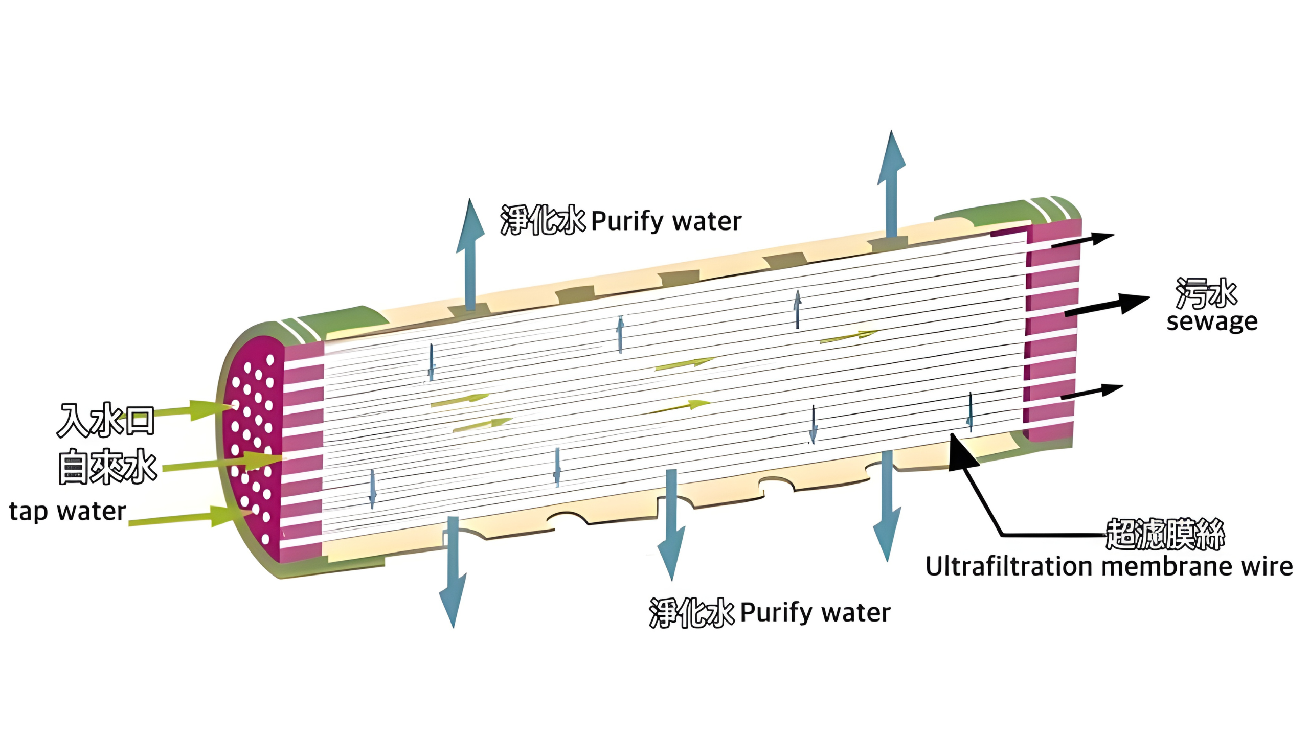 採用中空纖維超濾膜,過濾精度在0.1um~0.01um重金屬有機化合物無法過濾,所以不能生飲,必需煮沸比較安全。