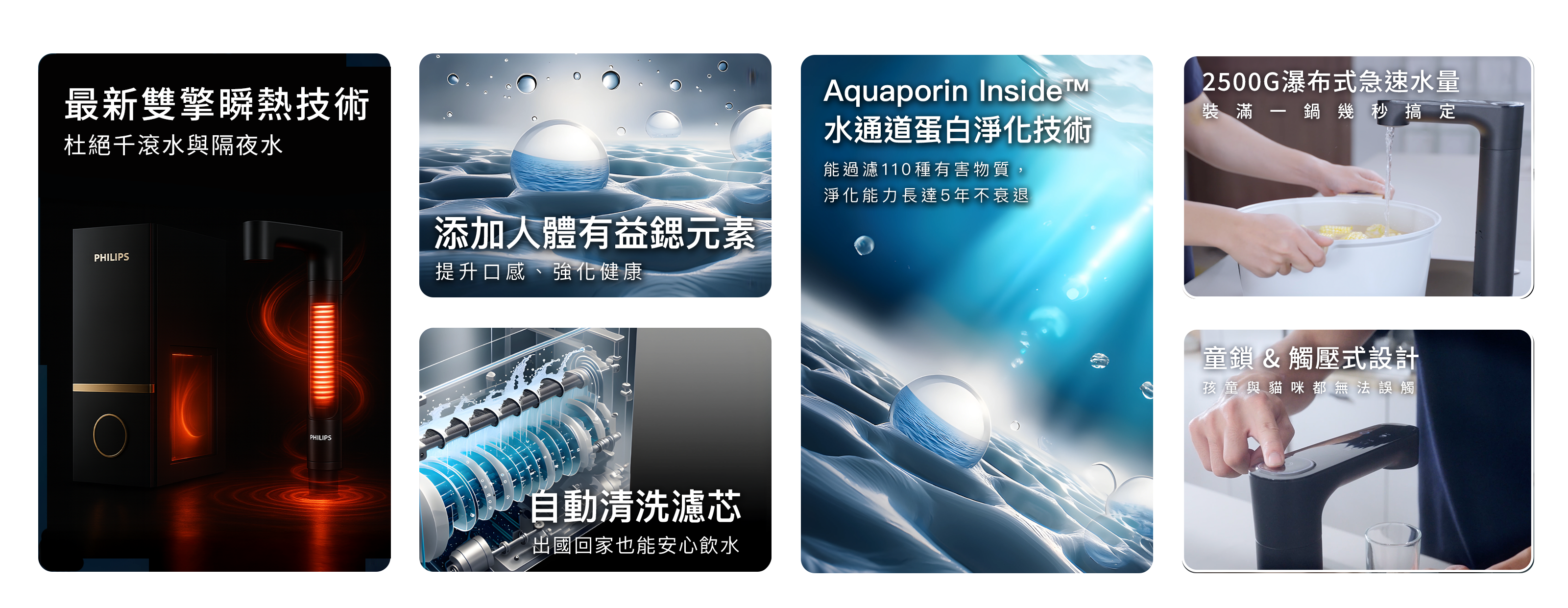 •搭載Aquaporin Inside水通道蛋白淨化技術
