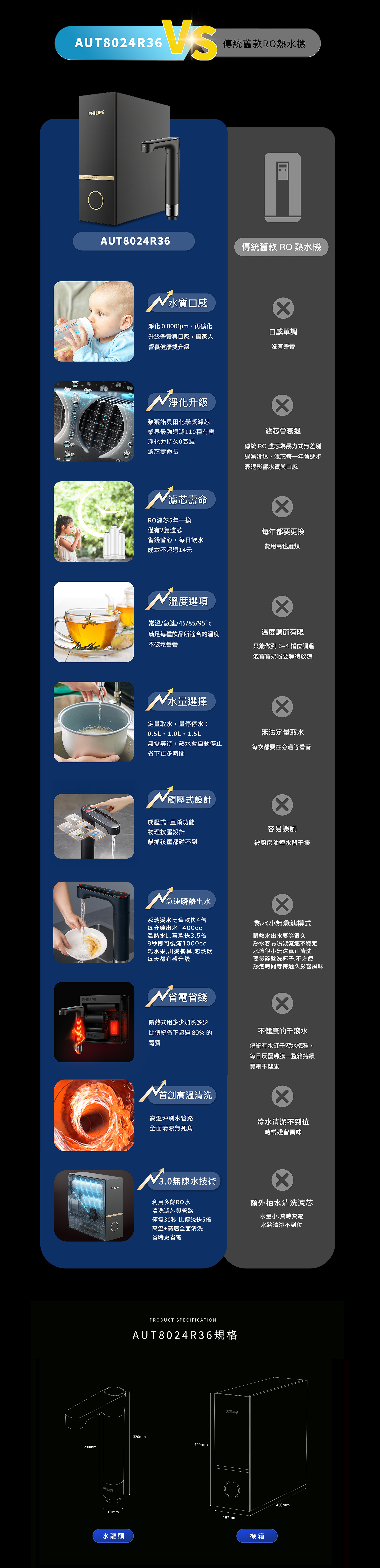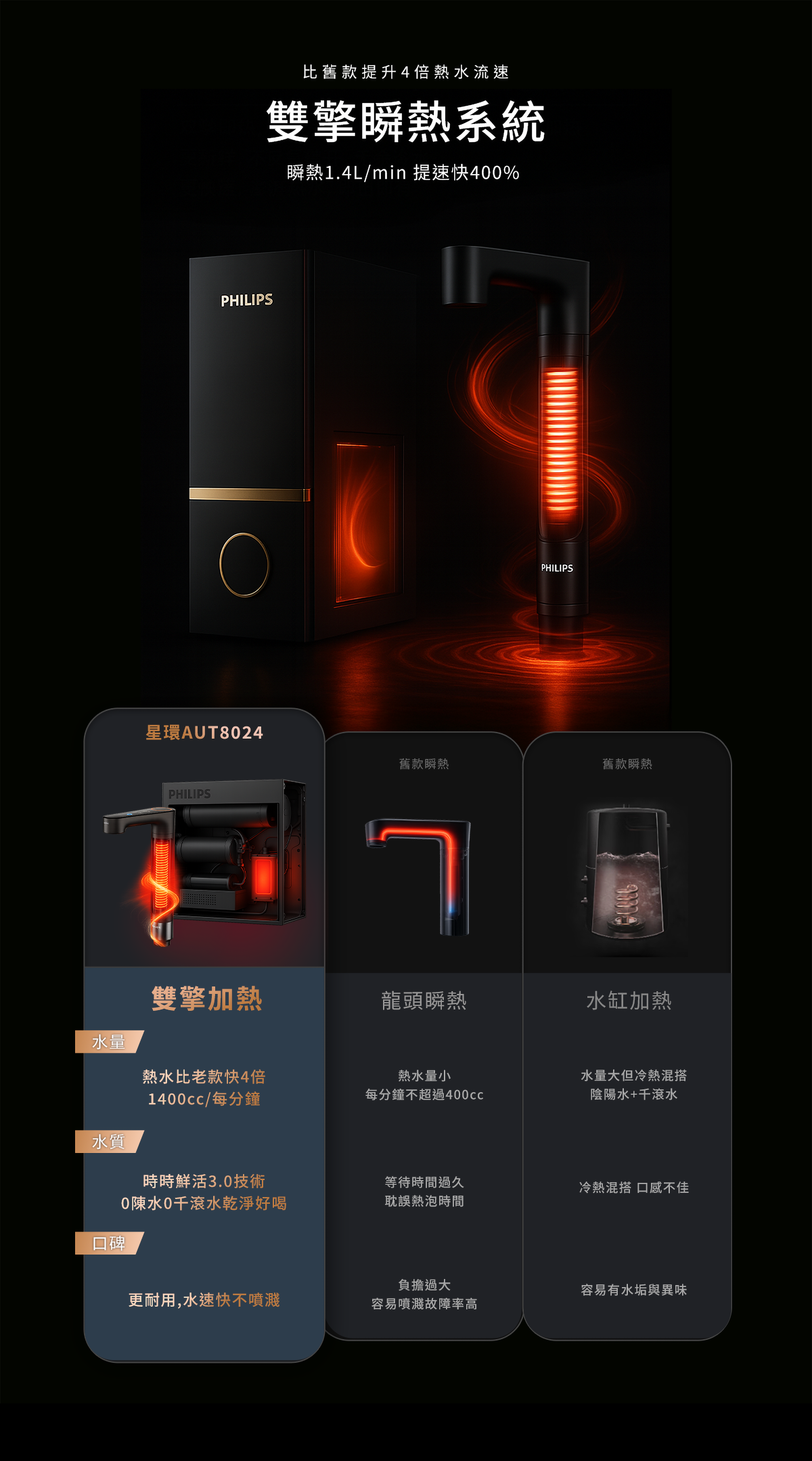 飛利浦 Philips|廚下型瞬熱RO淨水器|水通道蛋白膜富礦化急速2500G|星環系列 | AUT8024