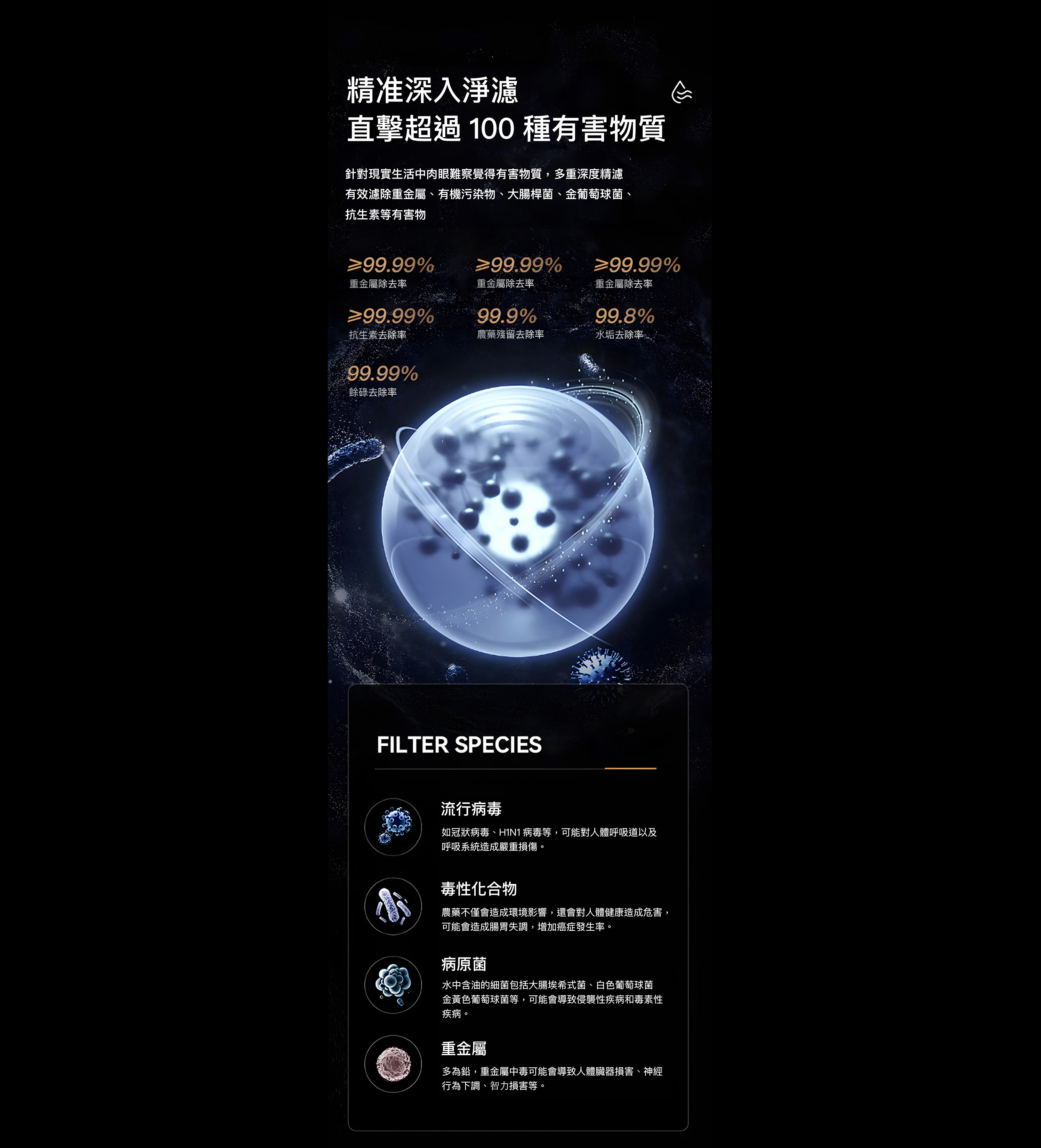 過濾重金屬離子、有機物、膠體、細菌等雜質