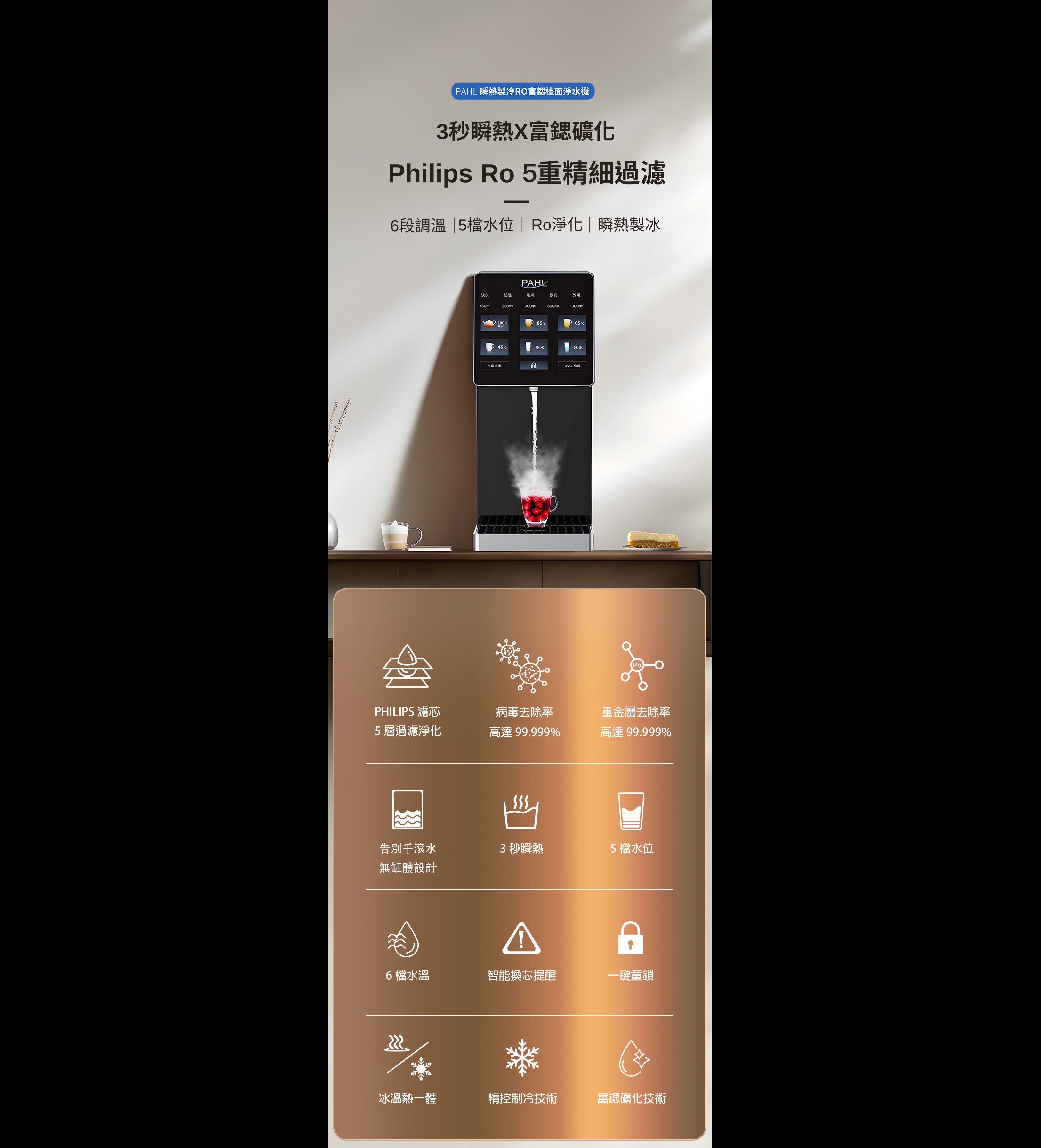 PAHL|PHILIPS RO機|瞬熱製冷檯面式富鍶礦泉水淨水器|TA323