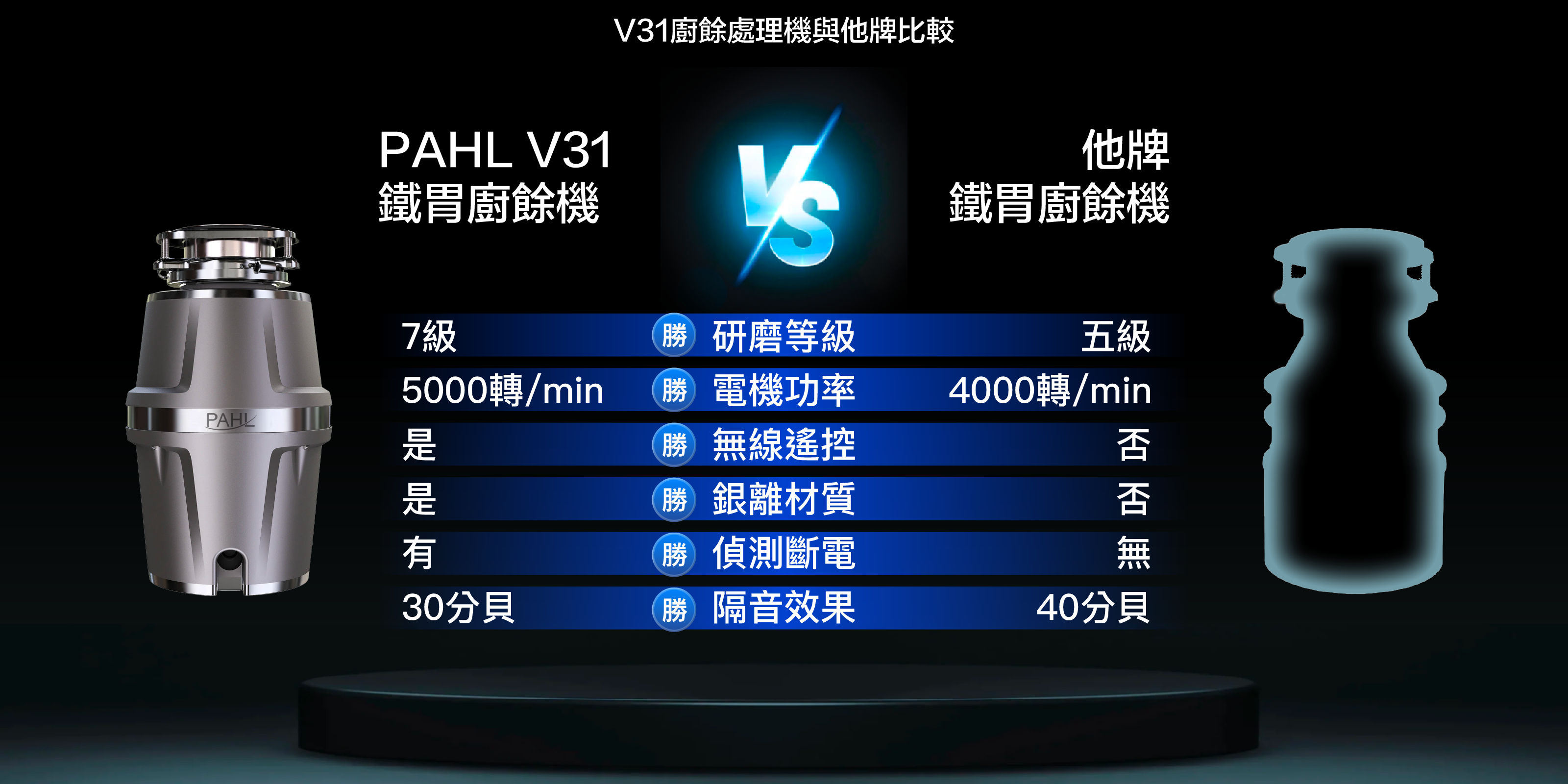PAHL|V31廚餘機|Ag+銀離子|廚下型