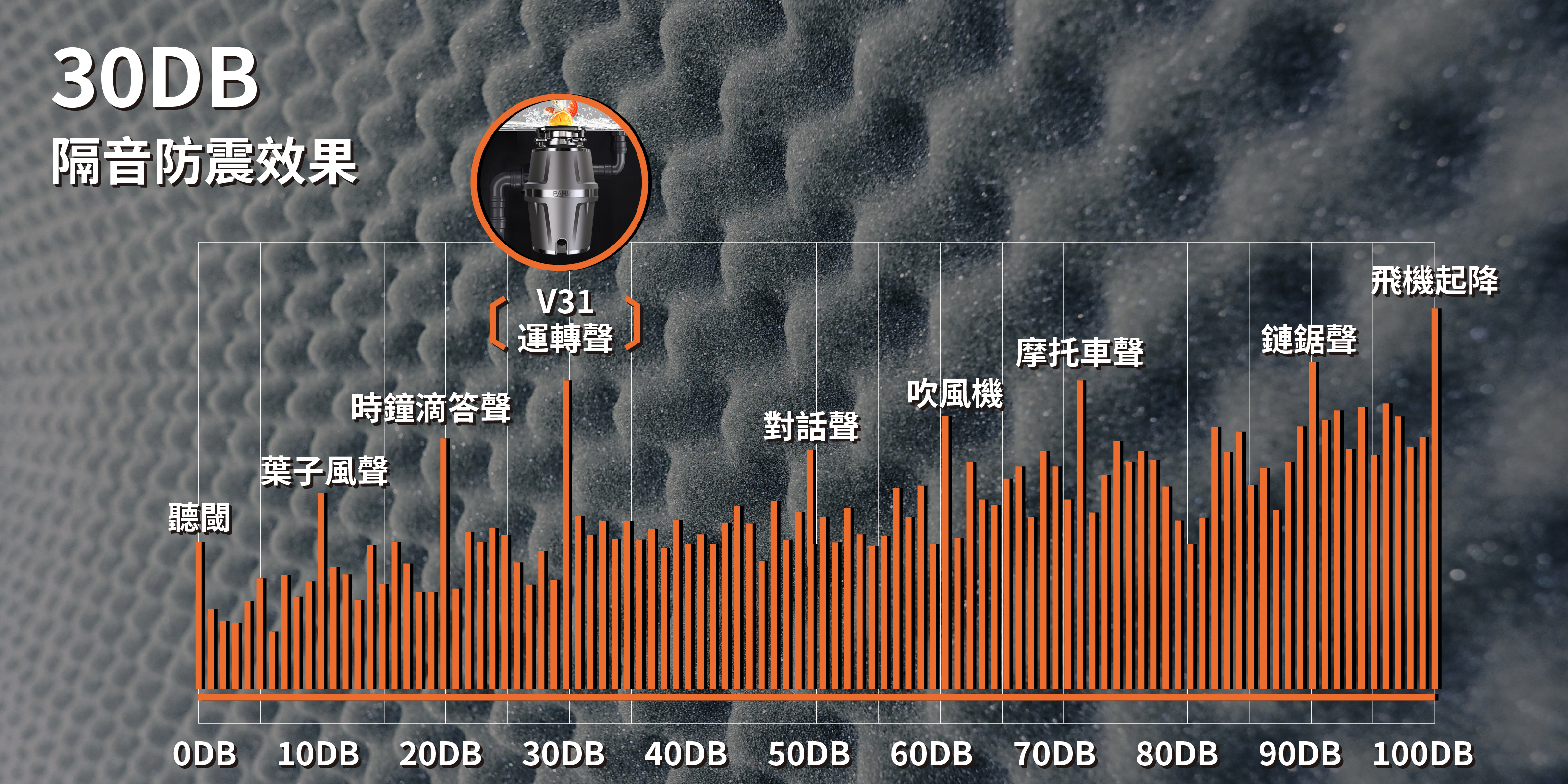 V31有過載保護裝置,忘記關機時將會在數分鐘內自動關機,並且使用無刀片設計研磨倉內深度達15cm 廚餘細碎流入污水系統。廚房將不再有臭氣熏天、漫溢的廚餘垃圾。