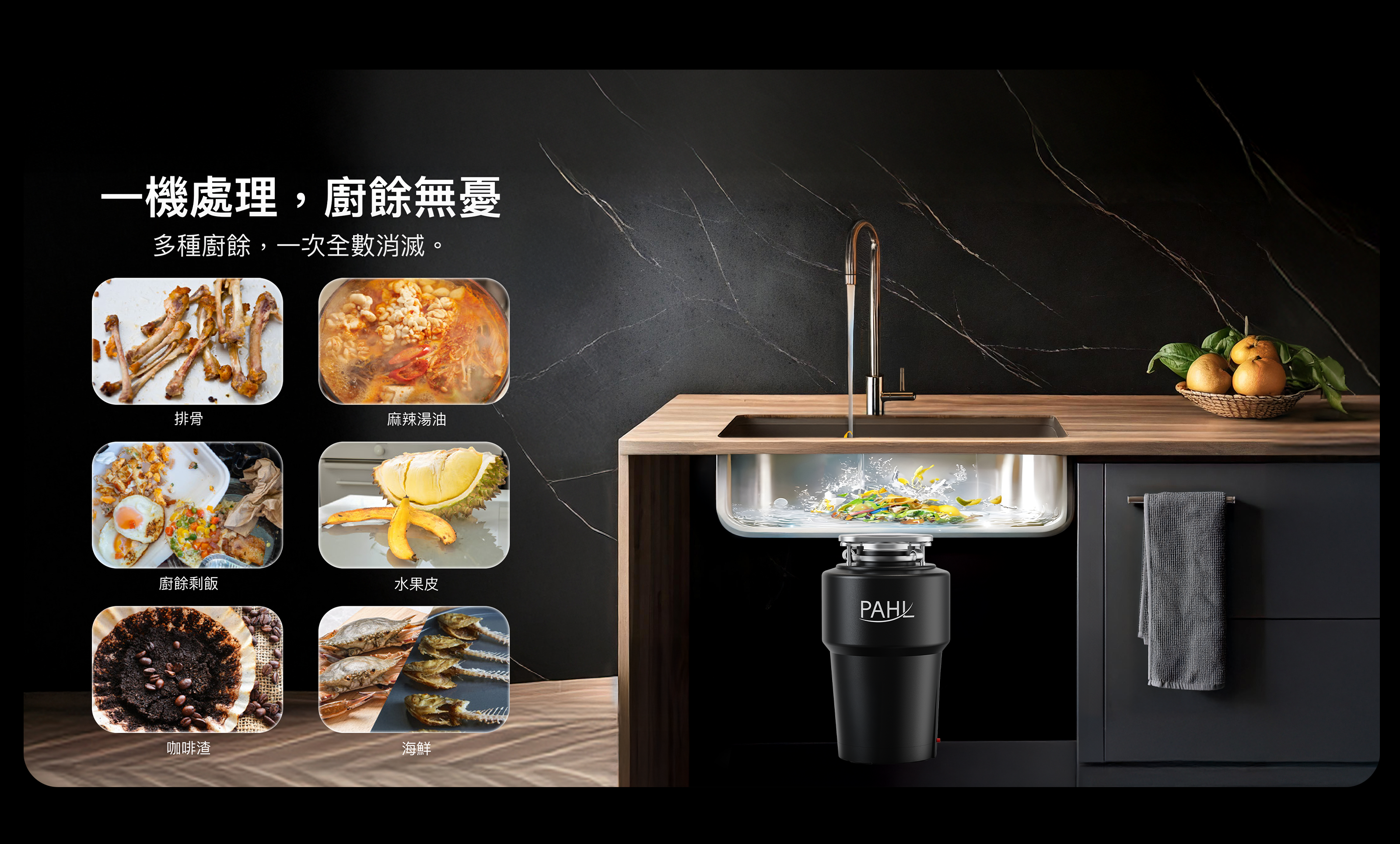 不僅處理廚餘,咖啡渣或是頑強油垢都能加速排除,平常洗碗洗水槽廚房將更輕鬆