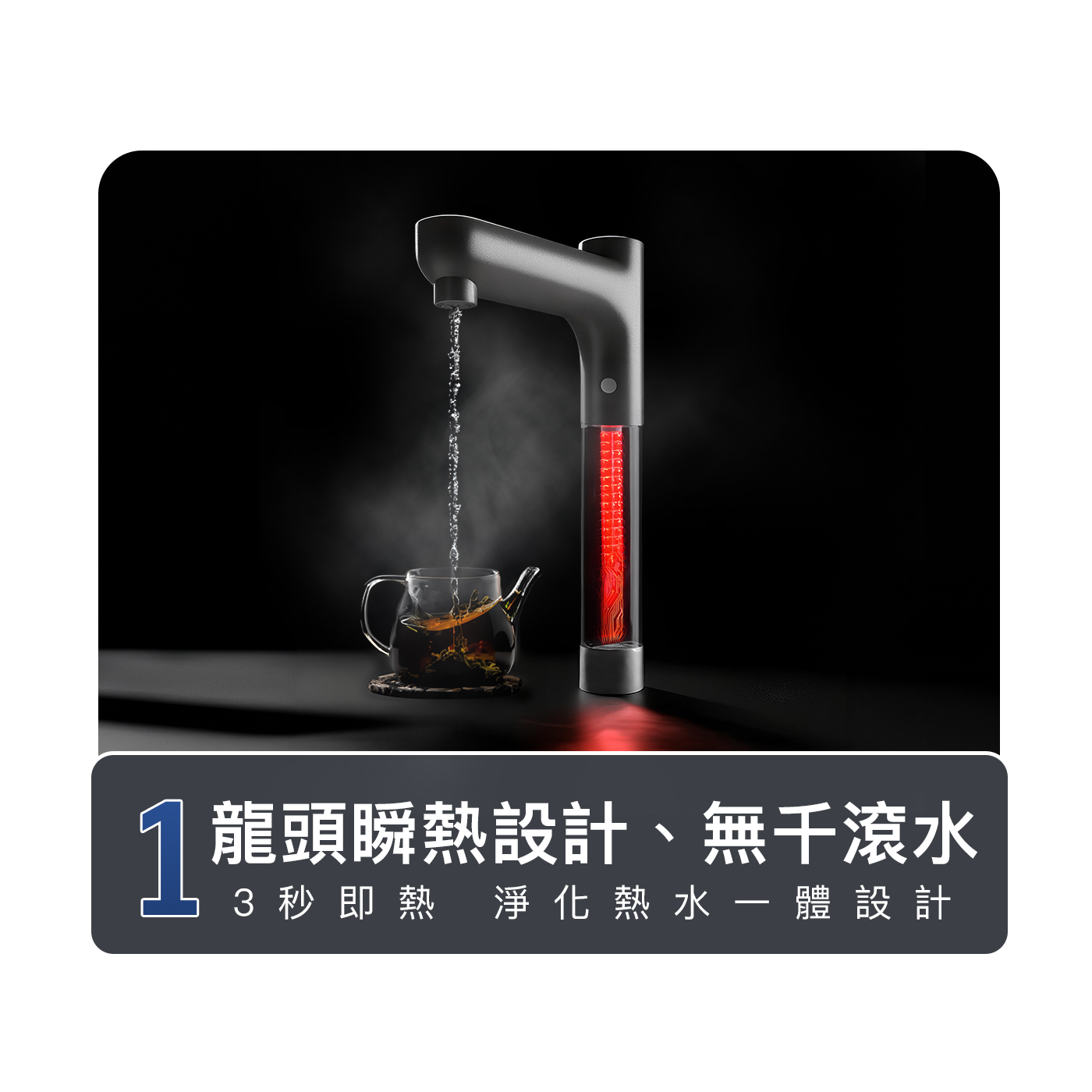 - 🚿 龍頭瞬熱技術:無需再擔心千滾水,讓每一滴水都鮮活可飲!