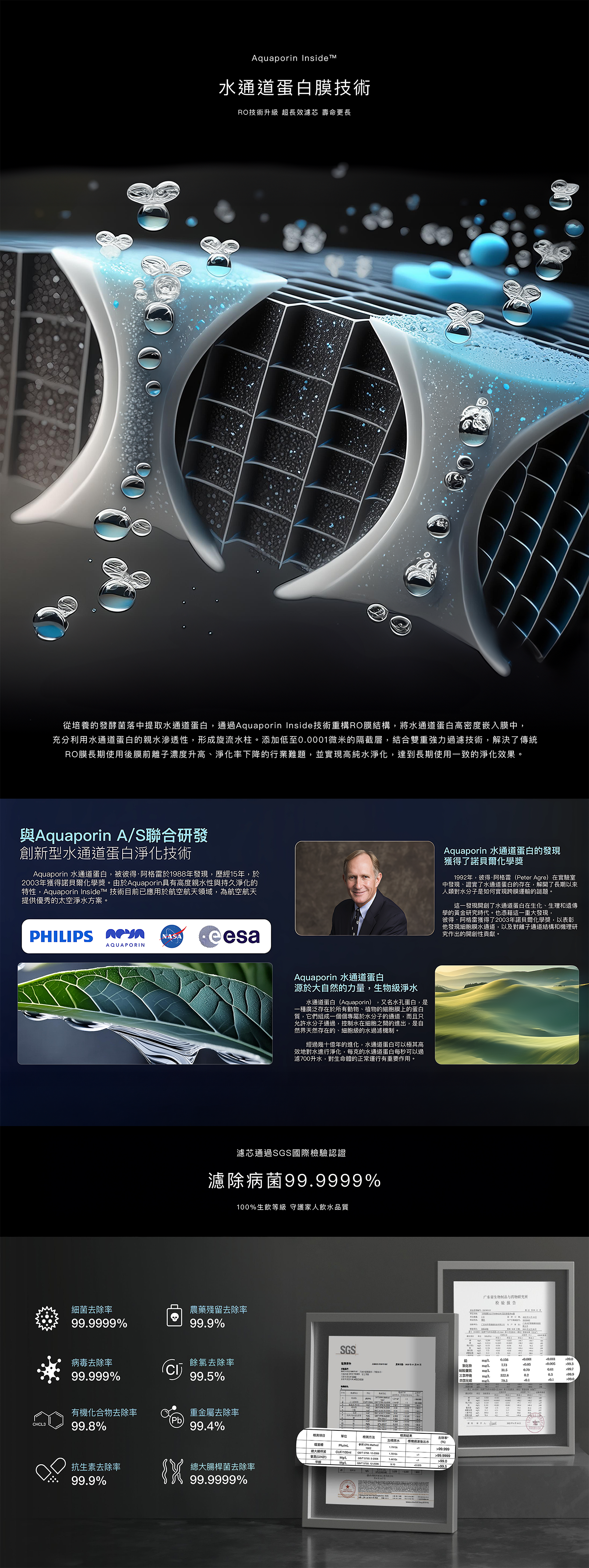 - 🏆 採用源自丹麥、榮獲諾貝爾化學獎技術的水通道蛋白膜